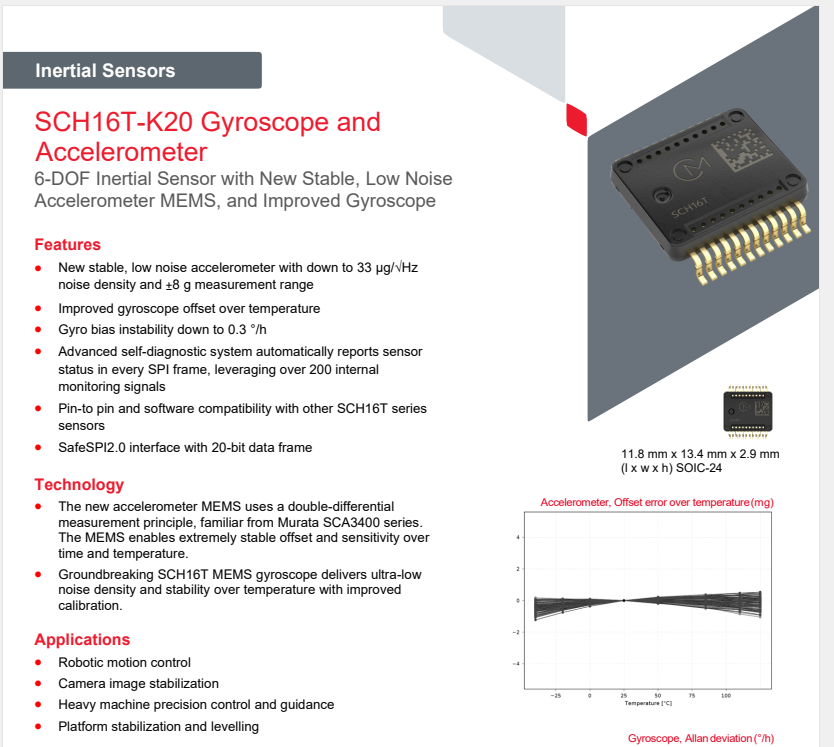 SCH16T-K10 | SCH16T-K01 | SCH16T-K20 | Murata | Murata | 6DoF gyroscope accelerometer sensor
